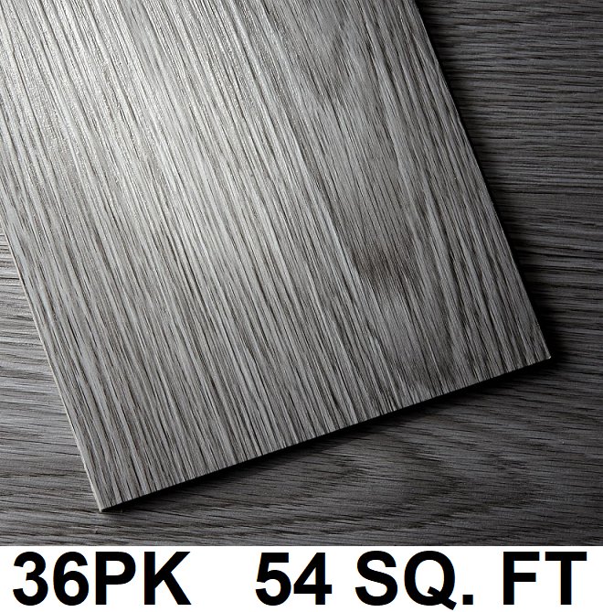 36PK HILARIOUS PELL & STICK ADHESIVE VINYL FLOORING, WOOD-LOOK, COVERS 54 SQ. FT - GREY