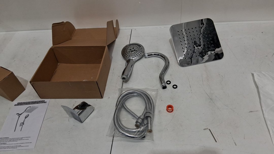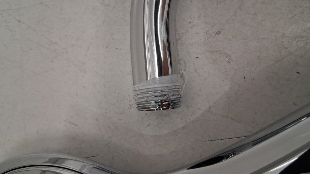 the hook to hold the shower head has the adhesive already attached and it is no longer sticky. the plastic that the adhesive sticks to is broken as well. the connections also have plumbers tape, indicating the item has been previously assembled.