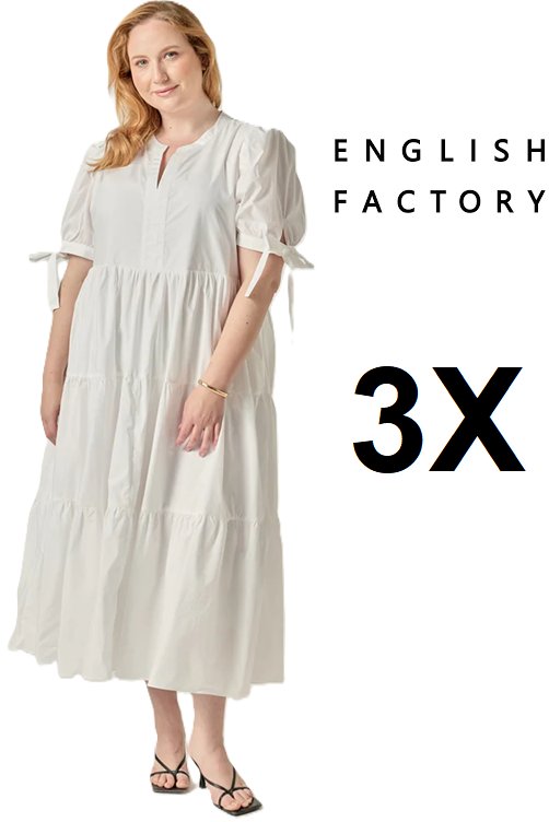 WOMEN'S ENGLISH FACTORY Plus Size Tiered Midi Dress With Bow Tie Sleeves - 3x - white (style: SS1151DX)