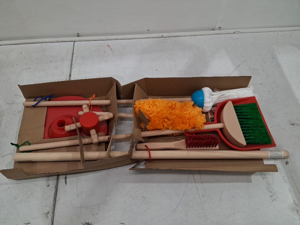 6PC MELISSA & DOUG LET’S PLAY HOUSE! DUST! SWEEP! MOP! PRETEND PLAY SET - KID-SIZED With BROOM, MOP, DUSTER, BRUSH, DUSTPAN, STORAGE STAND - MULTICOLOUR (MODEL: 96049)