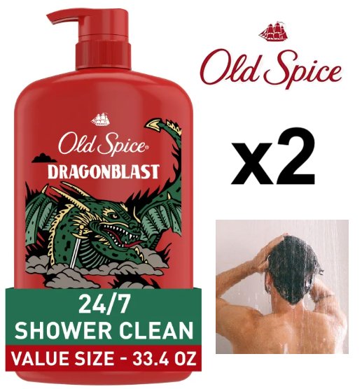 2 old spice dragon blast shower fresh body wash - 987ml/each