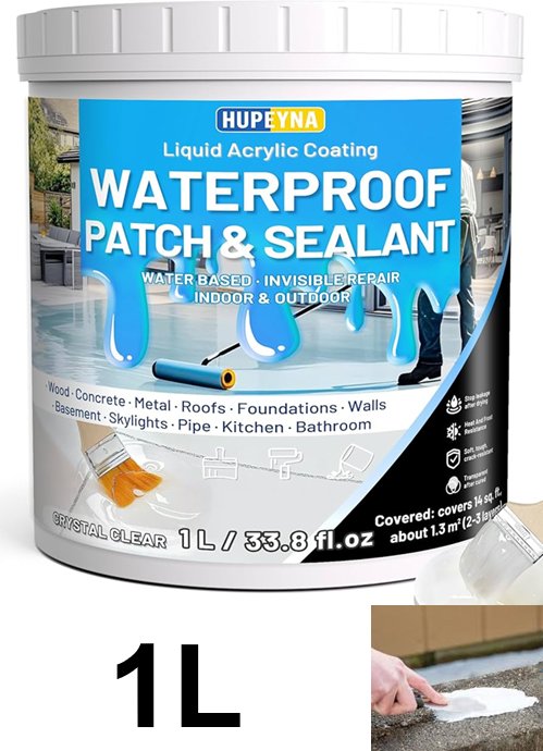 hupeyna liquid waterproof acrylic water-based sealant - 1L - crystal clear (model: hpfsj100ca)