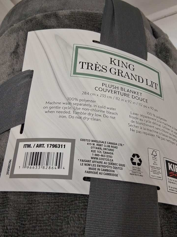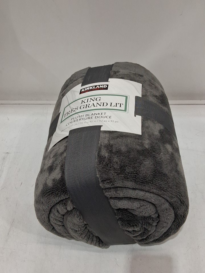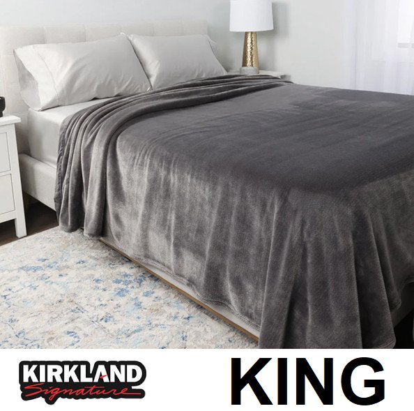 KIRKLAND SIGNATURE PLUSH BLANKET - KING (92" X 112") - grey (MODEL: 1796311)