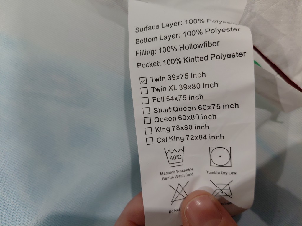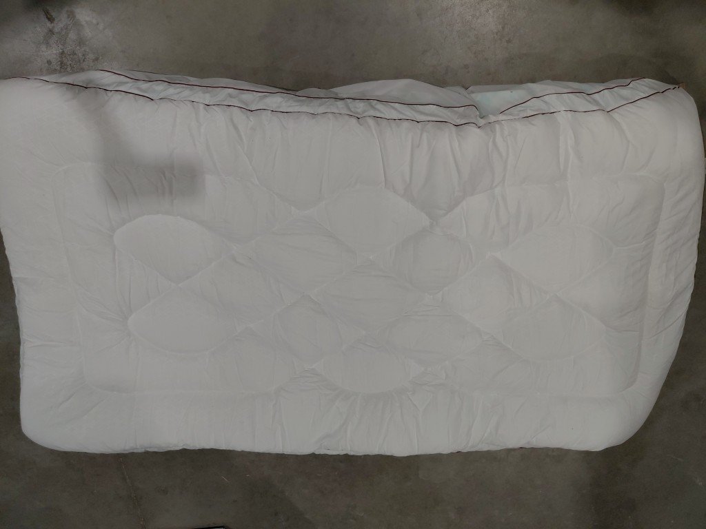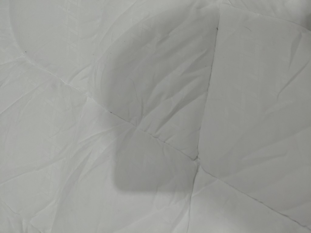 item has some hairs from previous use, item has some dust from warehouse floor on mattress topper pad, can be washed (see photos)