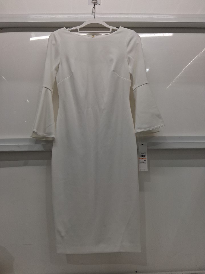 women's calvin klein chiffon sleeve bell sheath dress - size 2 - white (Style : cd0c133e)