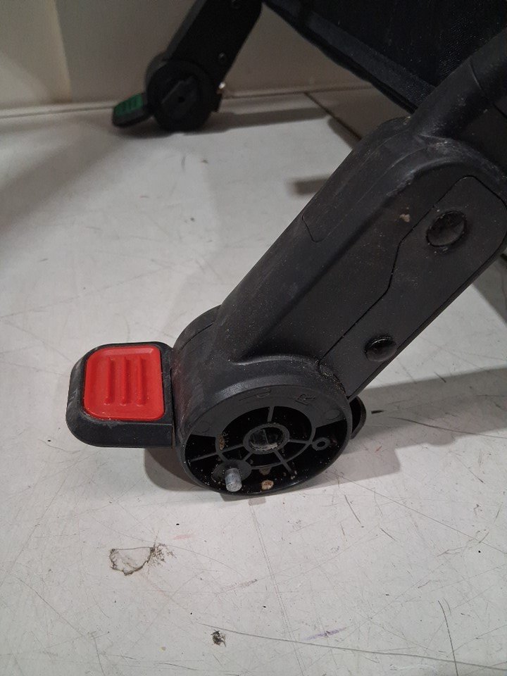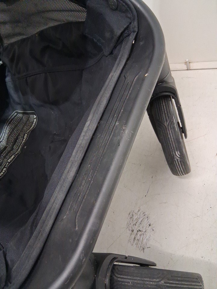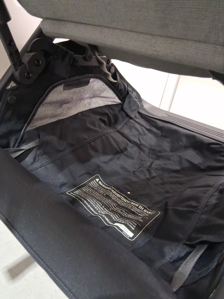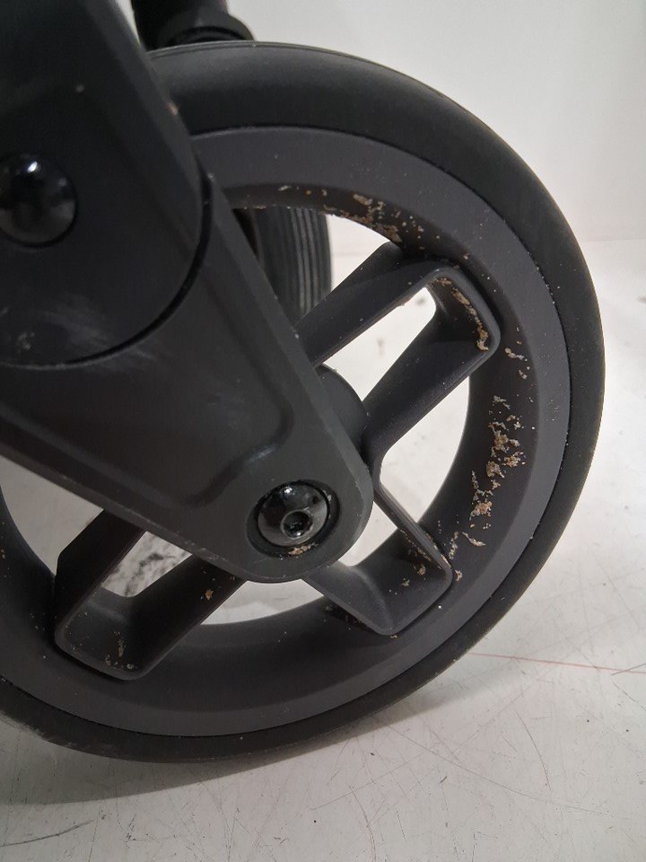 wheels show signs of use, some wear on the fabric as well as dirt underneath in the compartment.