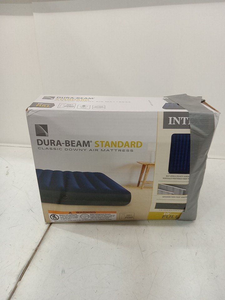 INTEX DURABEAM STANDARD DOWNY AIR MATTRESS WITH 300LB WEIGHT CAPACITY - 10" full - blue/GREY (MODEL: 64758E)