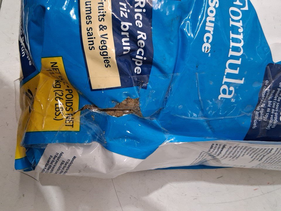 items bag has a hole but has been patched with tape ( see photos)