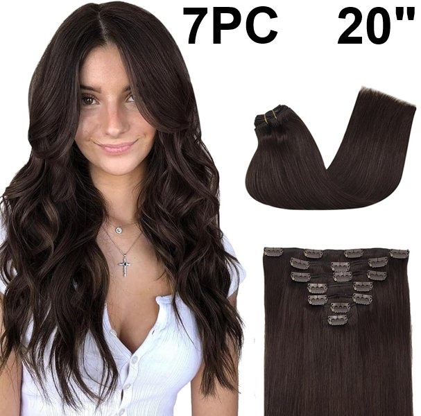 7PC GOO GOO Clip in Human Hair Extensions - 20" - 2A: Light Brown