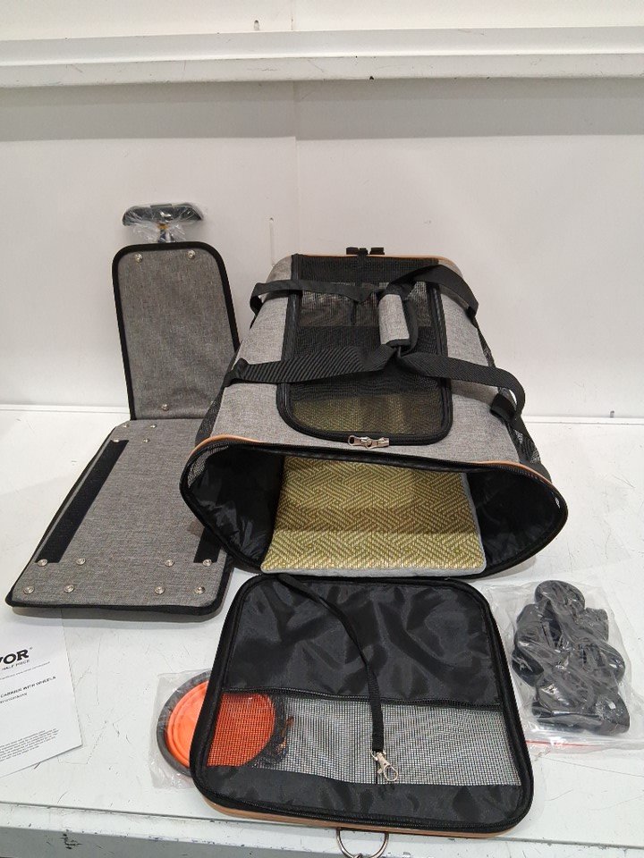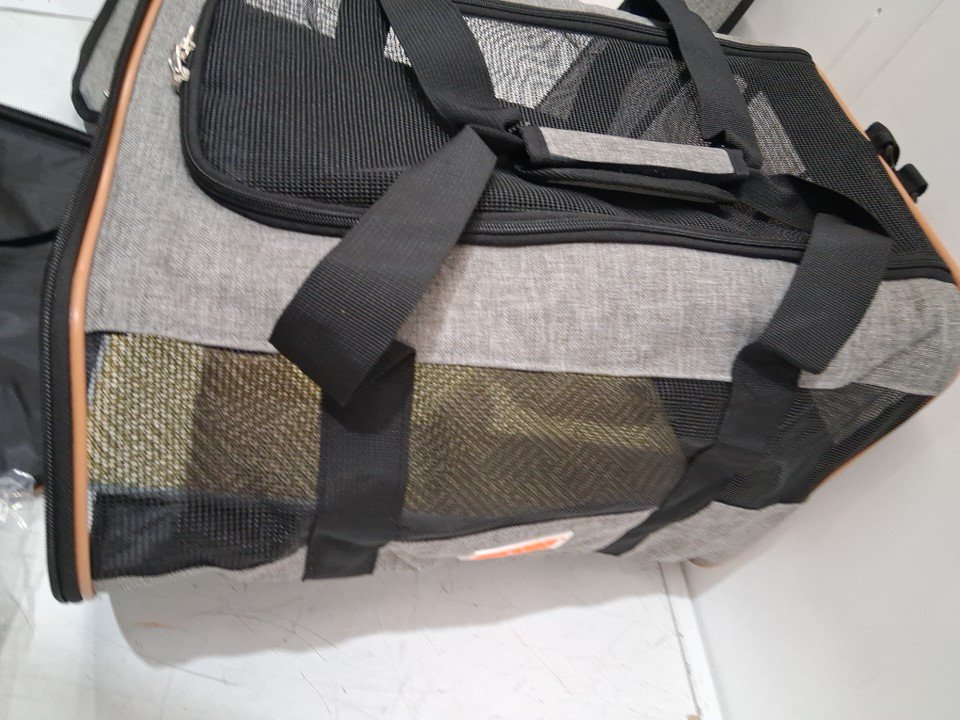 pet Carrier with Wheels, collapsible bowl, and strap Airline Approved - 22lbs cap - grey/black - (Model: JW-XB21212255(218))