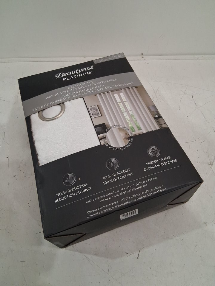 (2 PANEL) Beautyrest Mercier Blackout Curtains - 90" X 52" - White (MODEL: 6595105)
