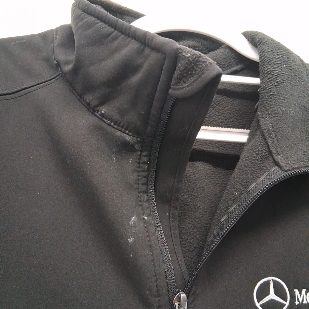 It appears something was spilled up by the collar. Should come out when washed. (see photos)