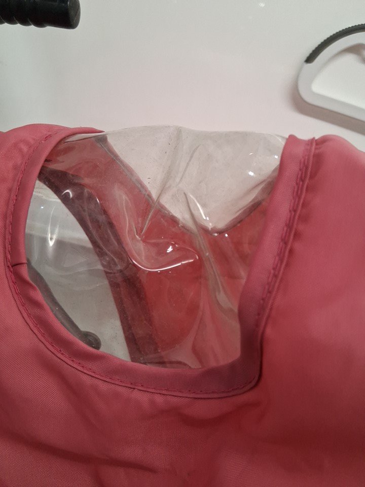 the wheels have some dirt on them, as well as the clear piece on the canopy has some water marks
