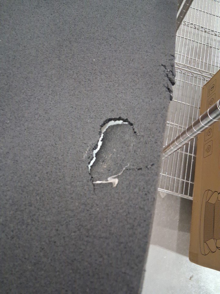 Mat has small hole torn close to one edge, several cosmetic slices. (See photos)