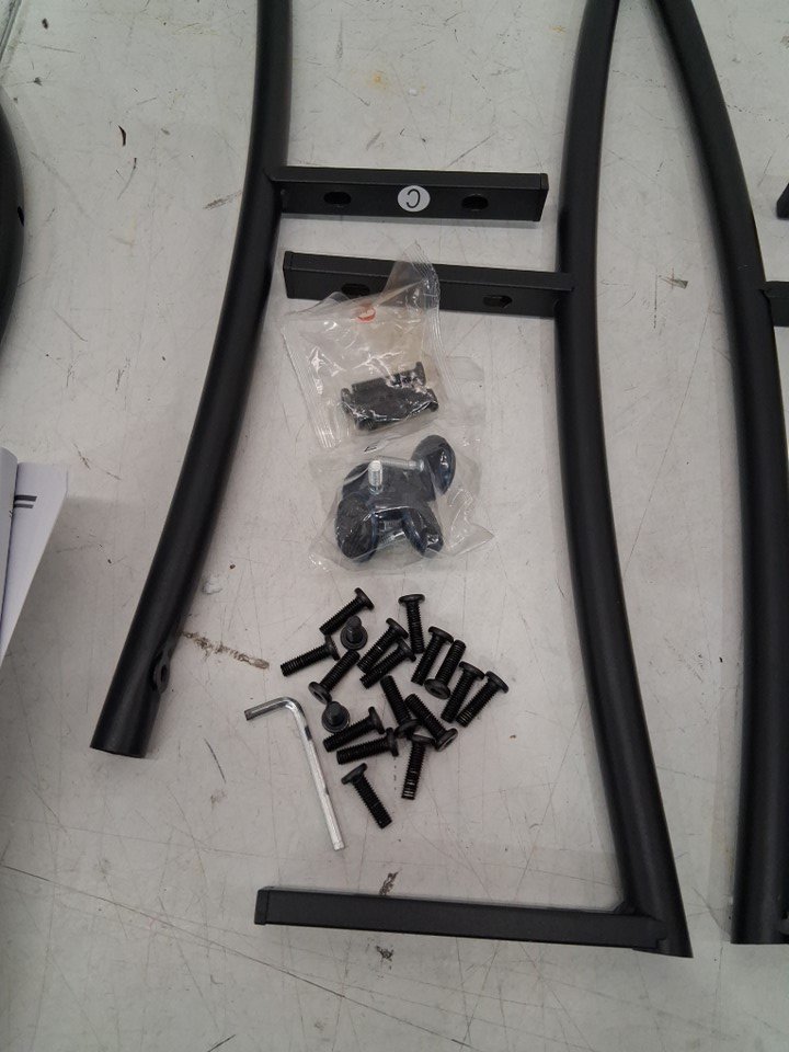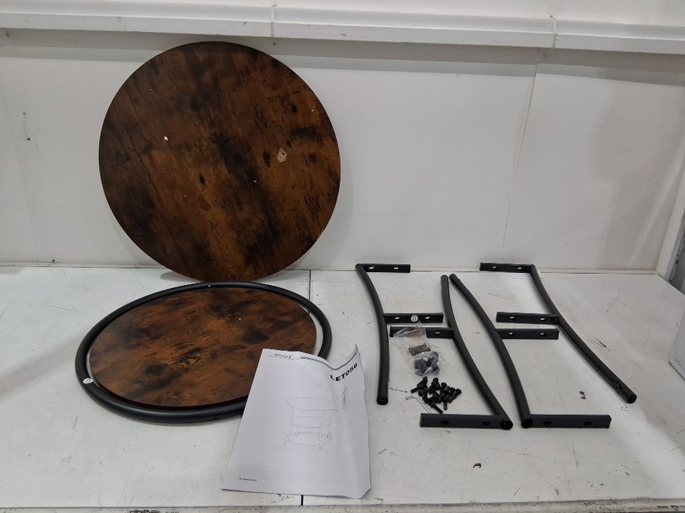 The main top table is a chunk missing from prior installation. Also some scuffs and marks. May need additional generic hardware.
