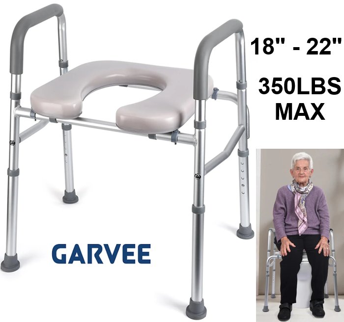 garvee adjustable raised toilet seat with arms and padded seat - 18" - 22" high - 350lbs max - (model: PHO-0XTFKT95)