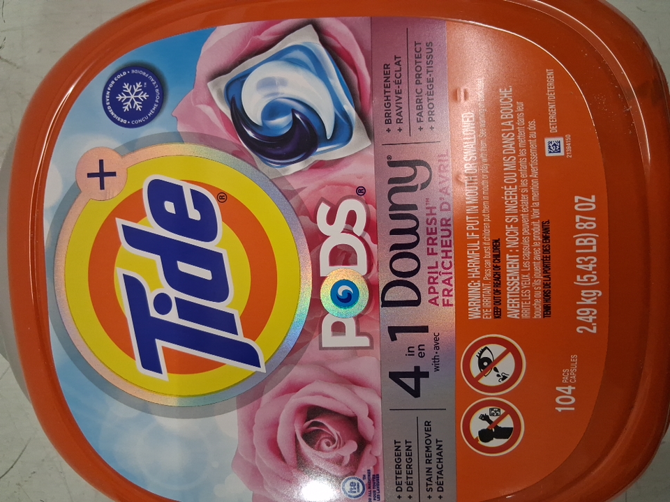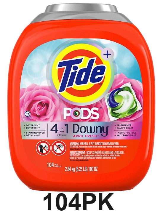 104PK TIDE PODS 4 IN 1 PLUS DOWNY LAUNDRY DETERGENT LIQUID PACS - APRIL FRESH (Model: 4645656)