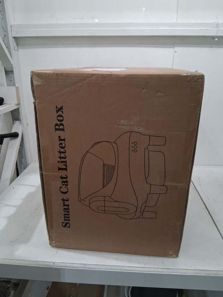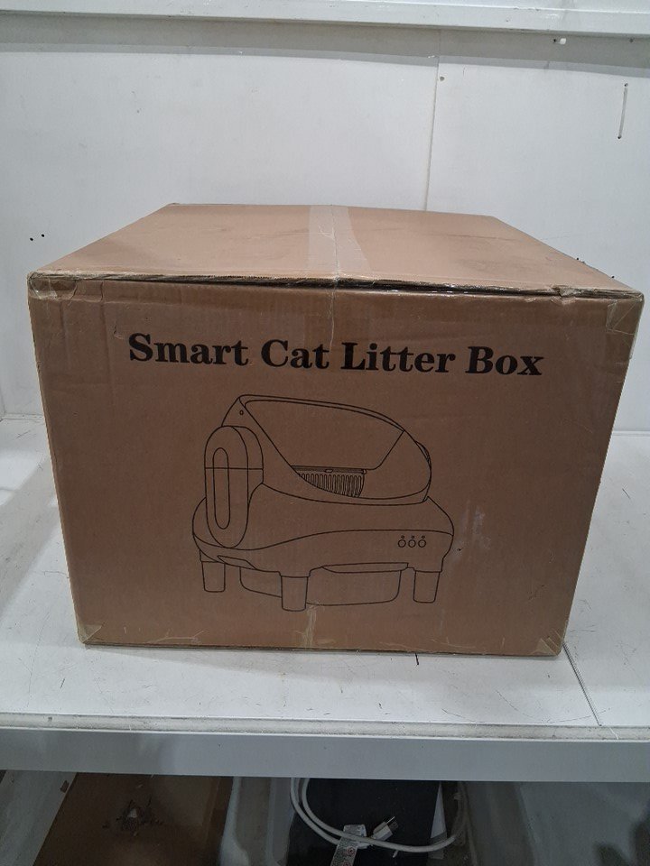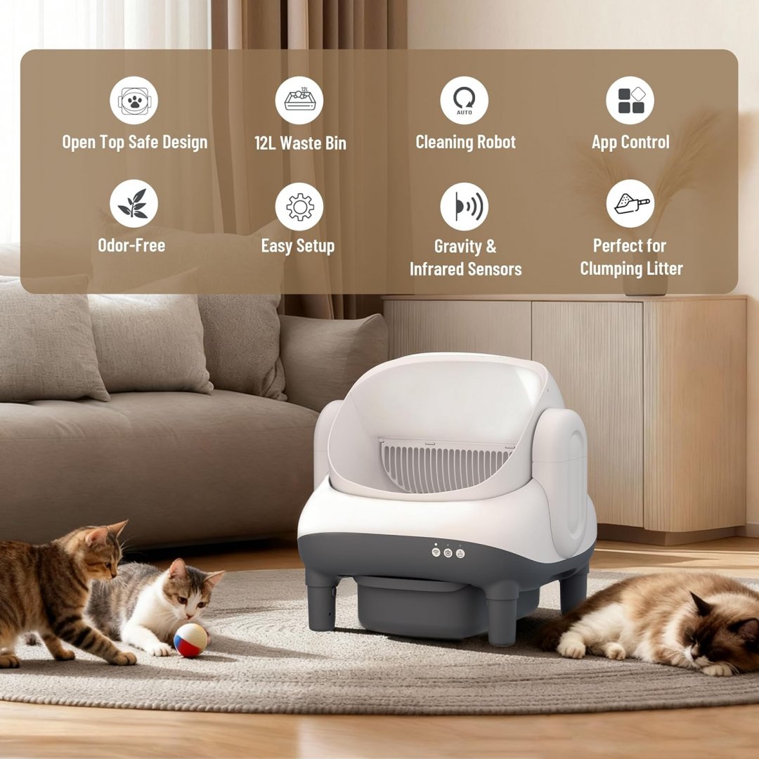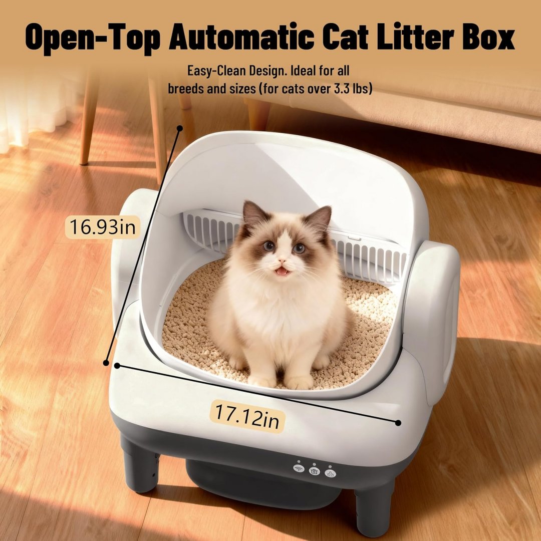 meowwhimsy automatic self cleaning open top cat litter box with app control - 12L bin, 17" x 17" - white/gray - (model: mini-e)