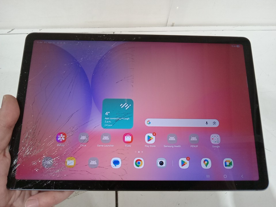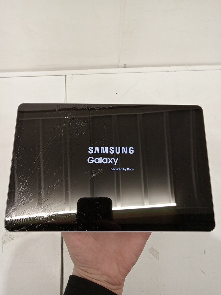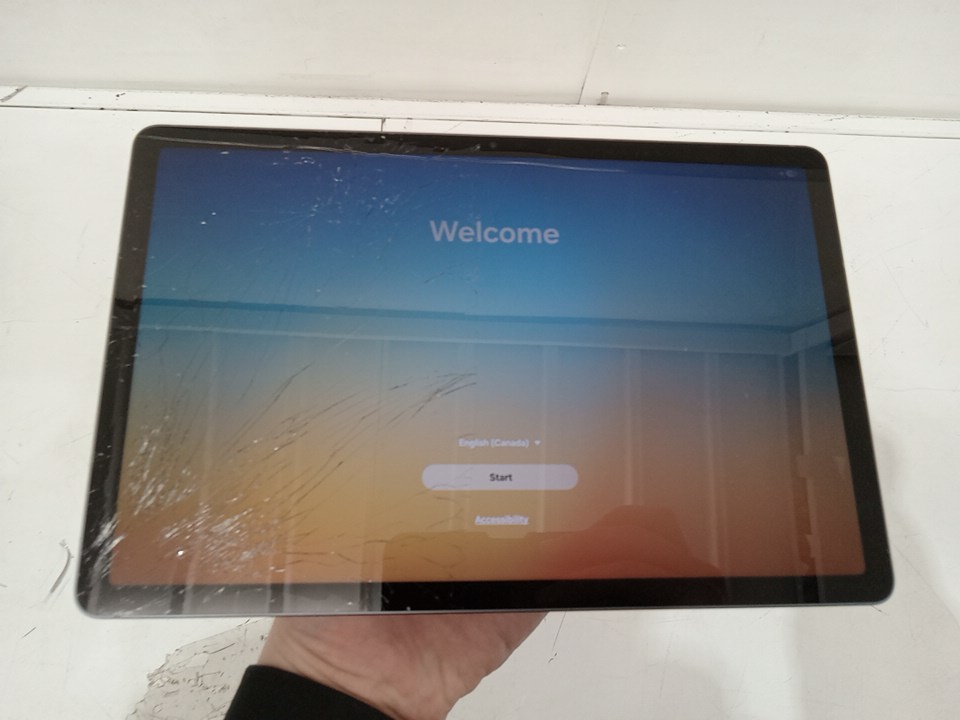 Item appears new. Item tested and working. Item marked with issue as half of the screen has been cracked in several spots as a result from shipping and has some minor scuffs on the the back housing. Although the touch works on the entire screen we highly recommend that the customer replace the screen prior to using the item.