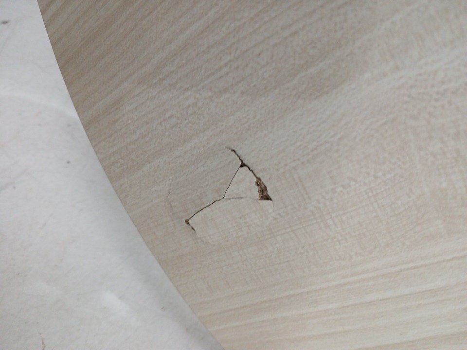 Holes on table top side appear to be from previous installation