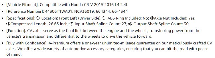 APREMIUM CV AXLE SHAFT ASSEMBLY FOR 2015-2016 HONDA CRV (FRONT LEFT DRIVER SIDE) (MODEL: CVA64344)