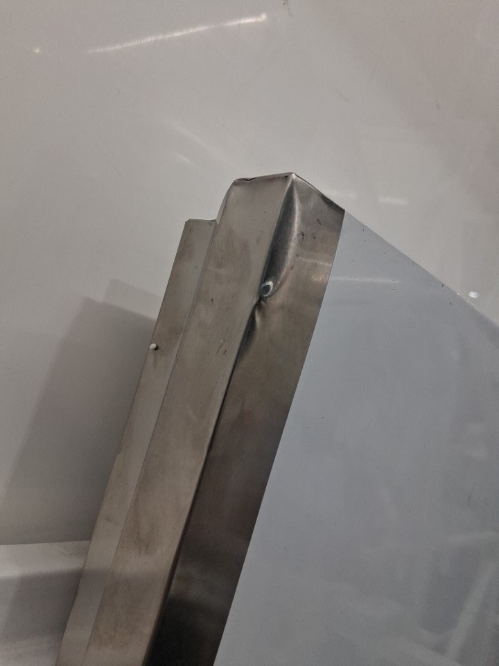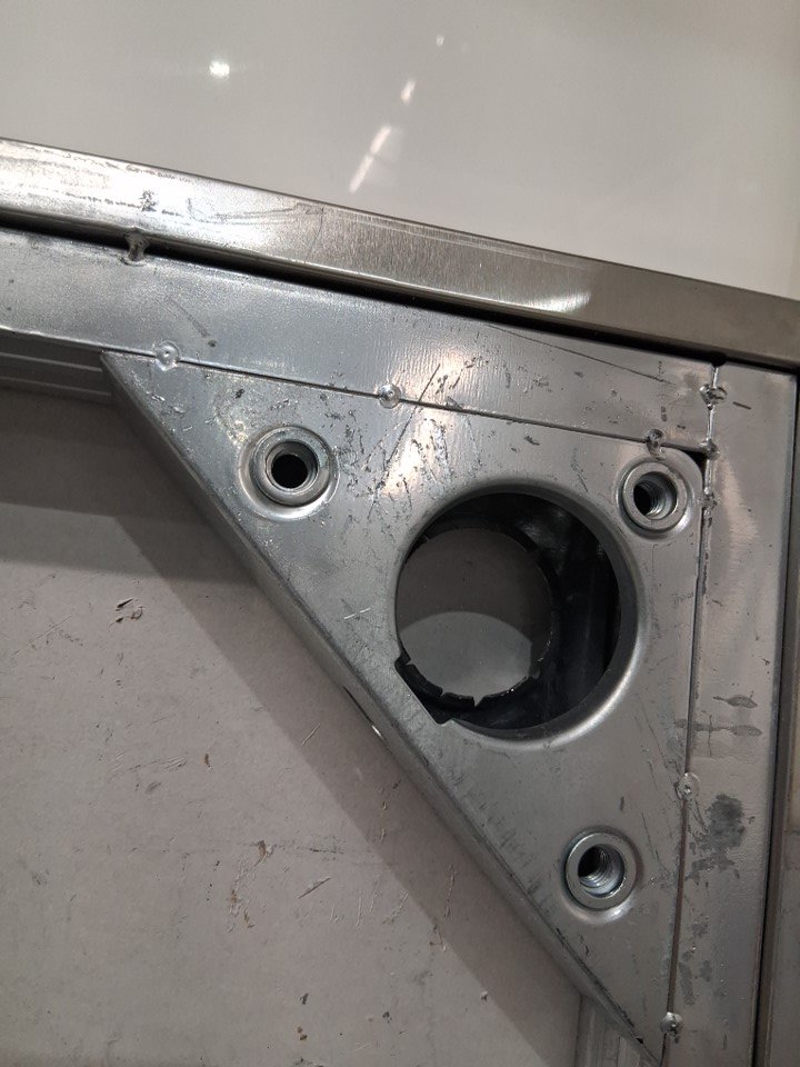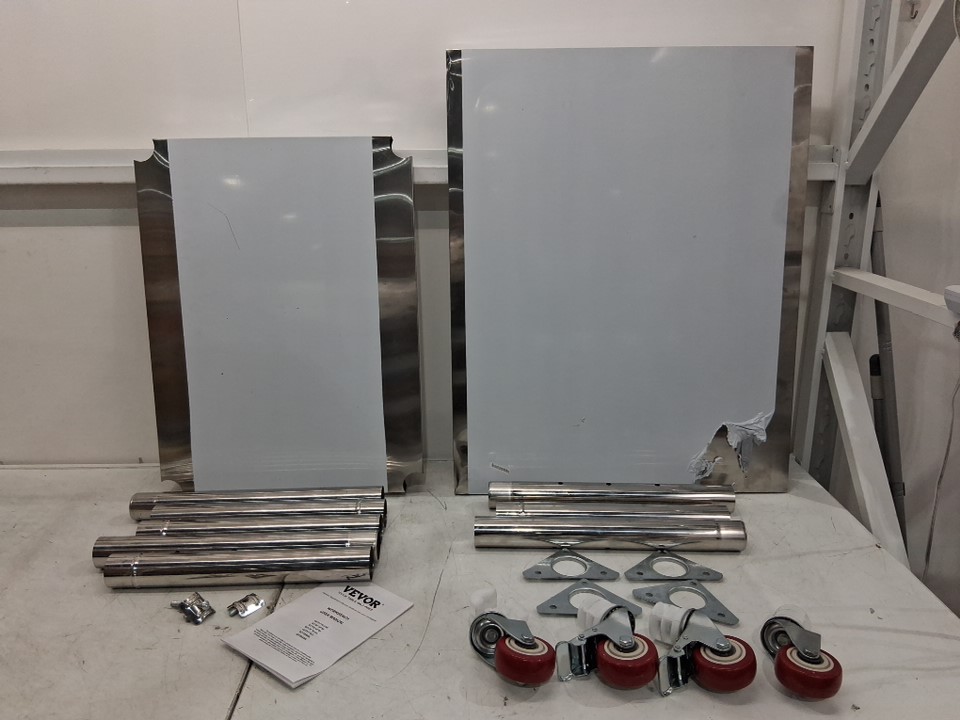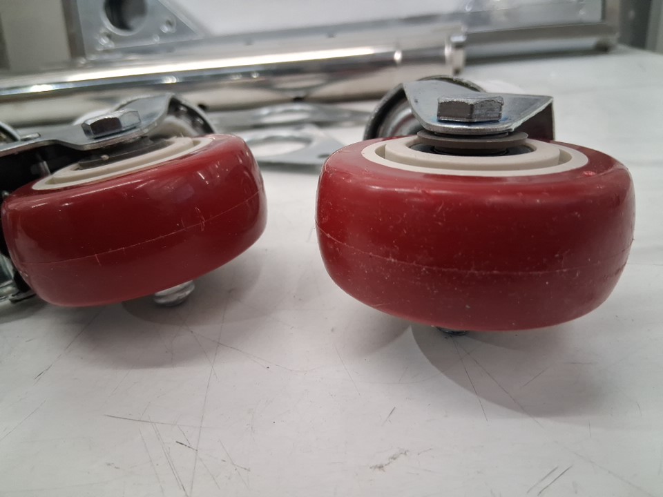 Scuffs under table and wheels, dent on corner of top table from previous use
