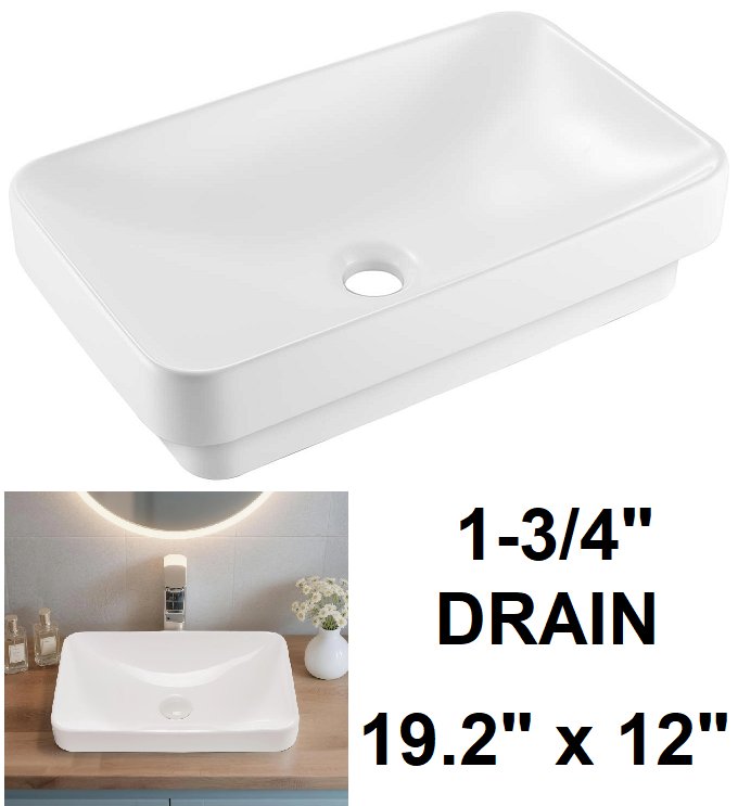 semi-recessed ceramic vessel sink with drain hole - 19.29"x12.01" 1-3/4" drain - white (model: 1170