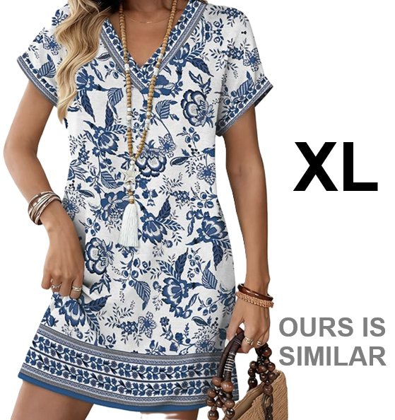 WOMENS tendency summer short sleeve dress - extra large - blue/ white