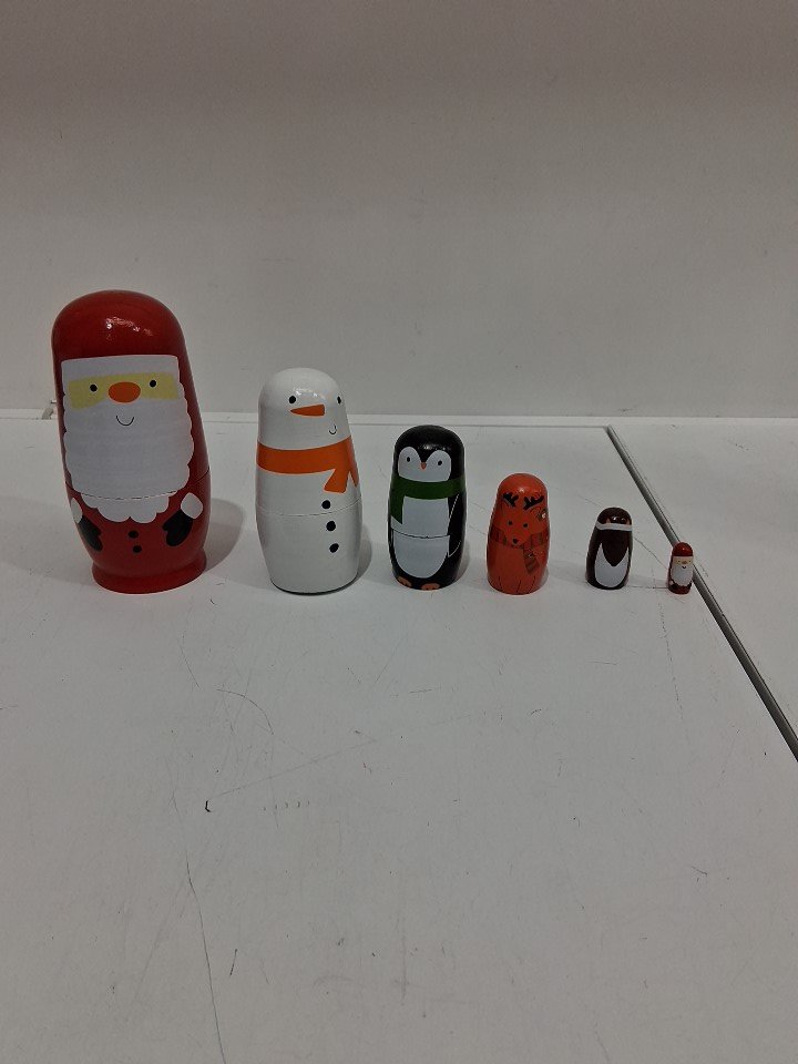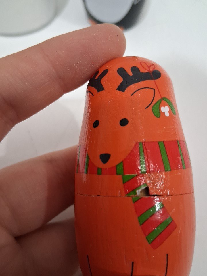 the reindeer has a small chip in the scarf area and the large santa has a small crack in the back of his head