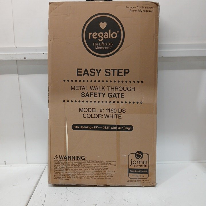 REGALO EASY STEP EXTRA WIDE METAL BABY SAFETY GATE - FITS OPENINGS 29"-38.5" WIDE x 30" HIGH - WHITE - (MODEL: 1160DS)