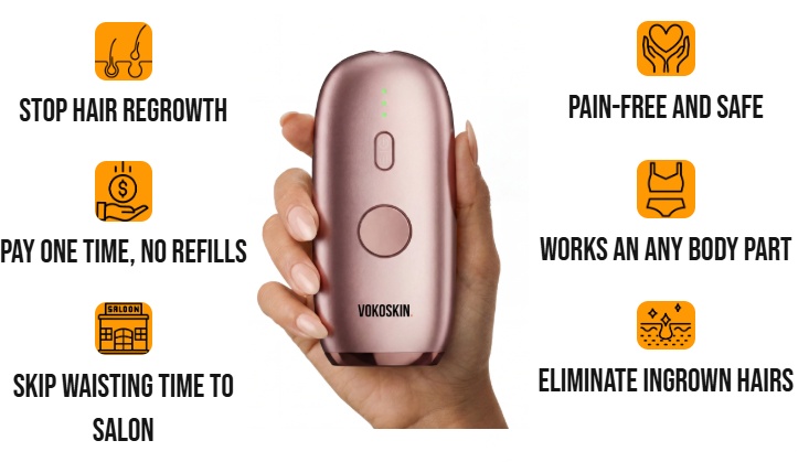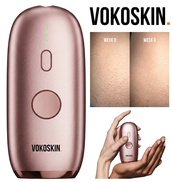 vokoskin vokopro ipl permanent hair removal device - full results in 6-12 weeks - rose gold