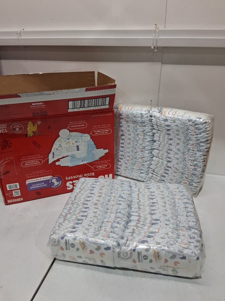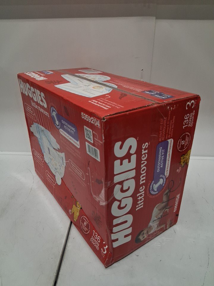 136PK HUGGIES LITTLE MOVERS BABY DIAPERS curved & stretchy fit - SIZE 3 - LION KING