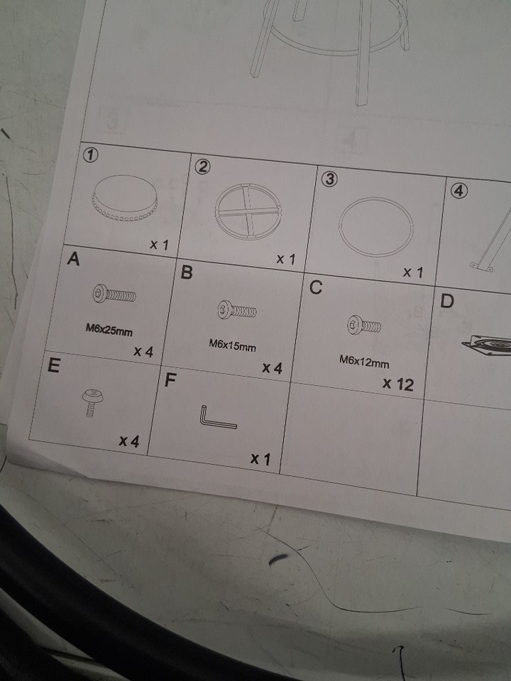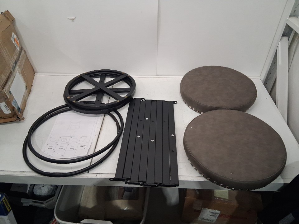 Hardware is missing and fabric on one cushion has ink markings from factory manufacturer