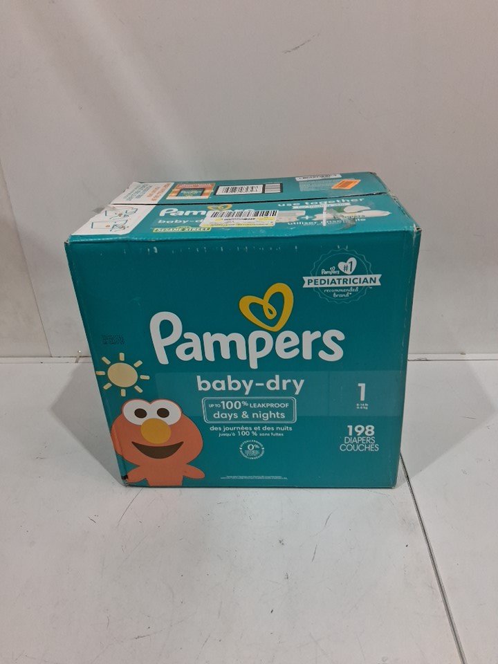 198pk pampers baby-dry leakproof disposable diapers - size 1 (8-14lbs) - sesame street