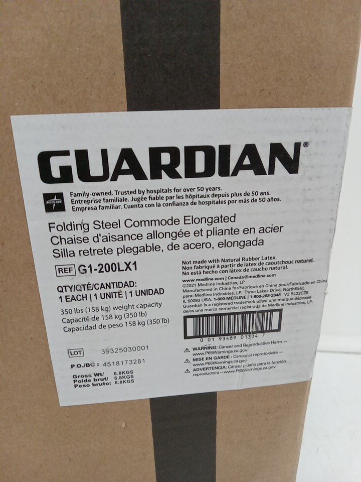 MEDLINE GUARDIAN 3-IN-1 STEEL FOLDING FRAME CLIP ON SEAY BEDSIDE COMMODE, ELONGATED SEAT - 350LB CAPACITY (MODEL: G1-200LX1)