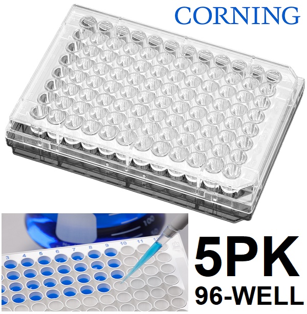 5pk corning biocoat collagen 1 96-well flat bottom tc-treated microplate with lid - opaque white (model: 354407)