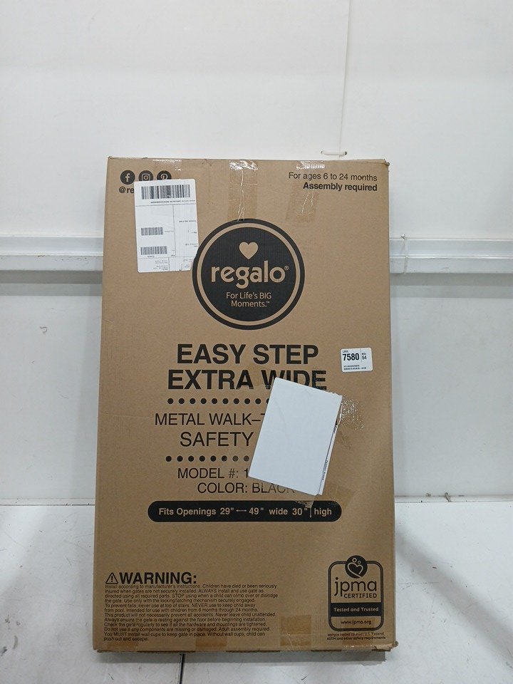 REGALO EASY STEP EXTRA WIDE METAL SAFETY GATE - 30" x 29" - 49" - BLACK (MODEL: 1164EBDS)