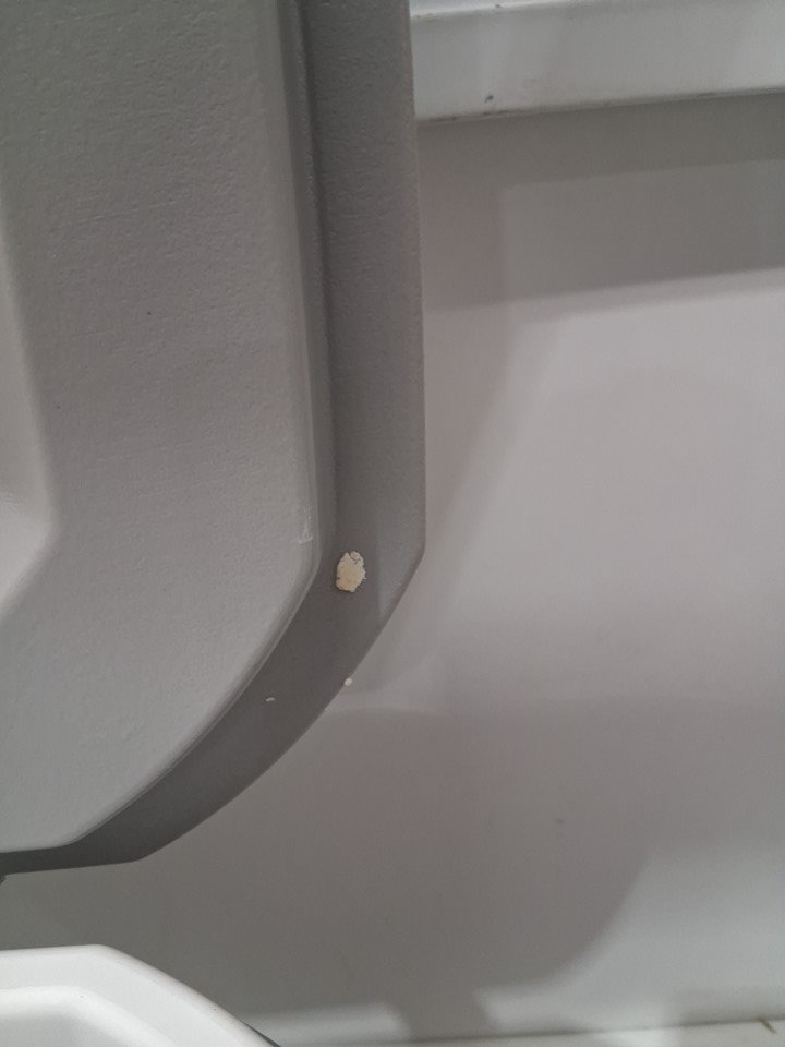 small cosmetic mark left corner near lid ( under lip ) and some food residue on the lid ( see photos )