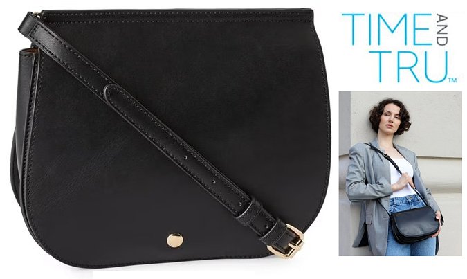 Women's Time and Tru Faux Leather Crossbody Bag - 9" x 7" - Black