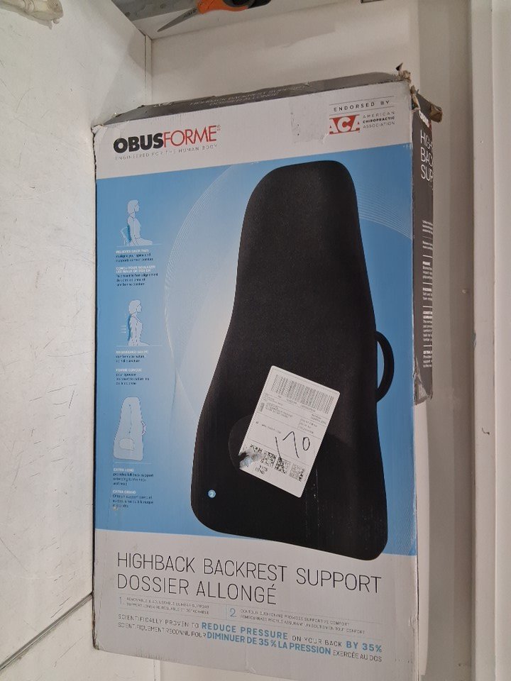 OBUSFORME HIGHBACK BACKREST SUPPORT WITH LUMBAR SUPPORT & CHAIR STRAPS - 18" x 7" x 31" - BLACK (MODEL: HB-BLK-CBc)