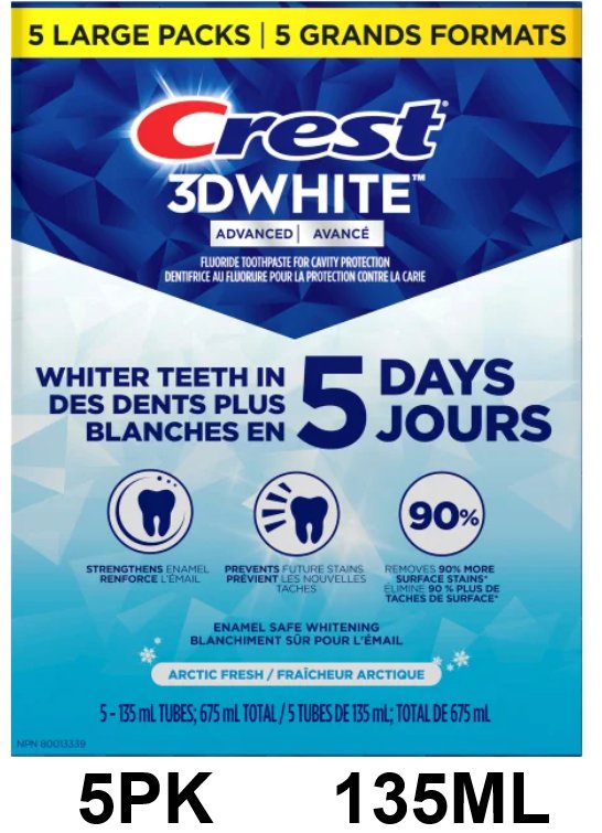 5PK Crest 3D White Advanced Teeth Whitening Toothpaste - Arctic Fresh - 135ML EACH