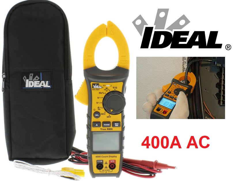 IDEAL TRMS Clamp Meter with NCV and Temp - 400A AC - yellow/black (MODEL : 61-737)