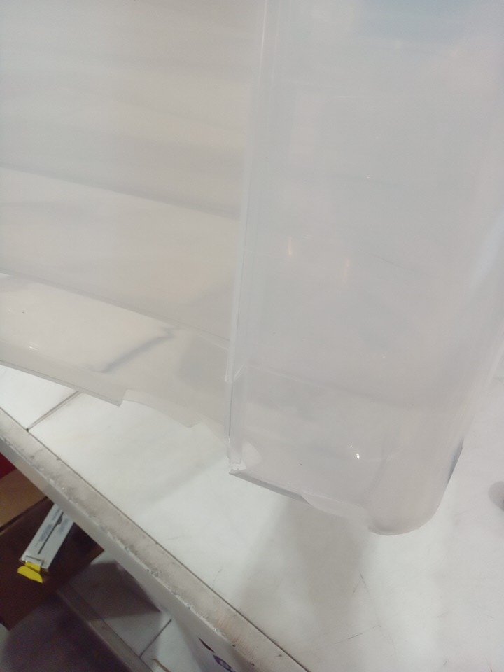 the one bin is broken on the bottom from shipping, see photo please.