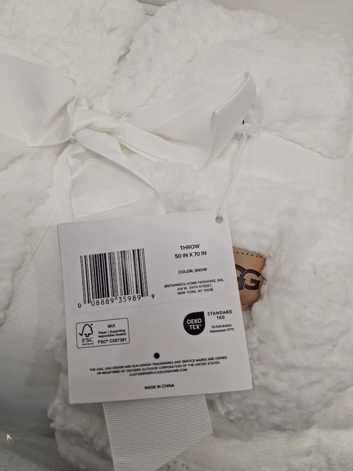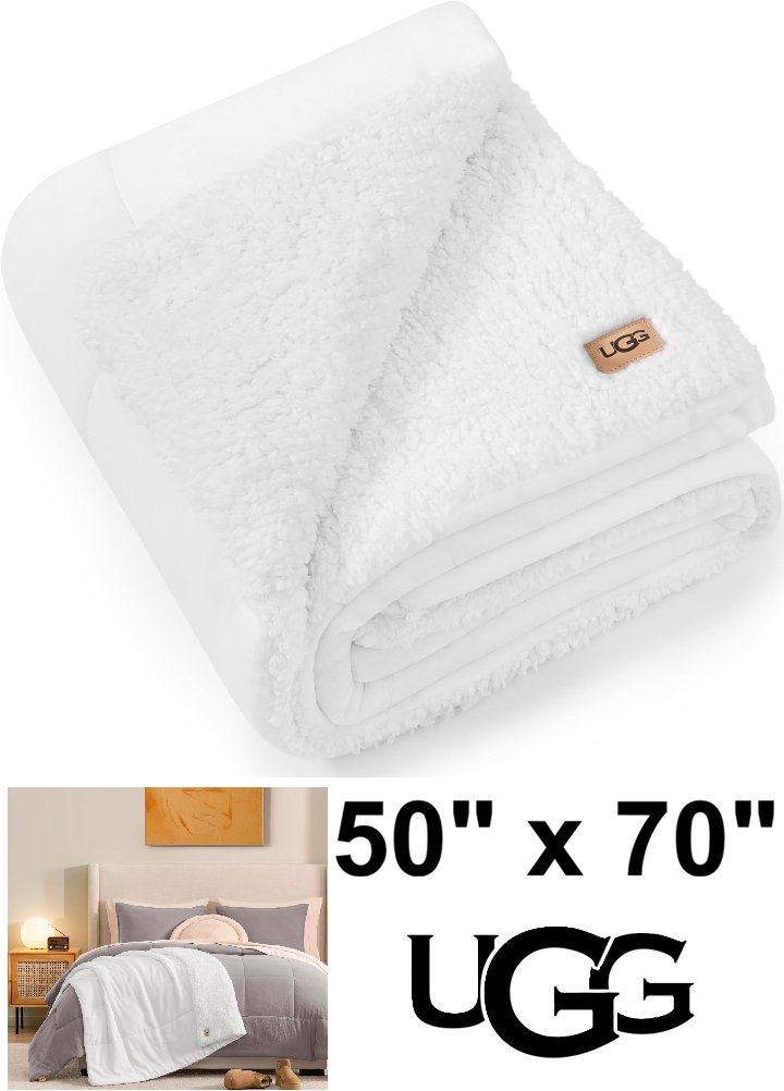 UGG Nita Throw Blanket Plush for Bed/Living Room - 50" x 70" - Snow (model: 35989)