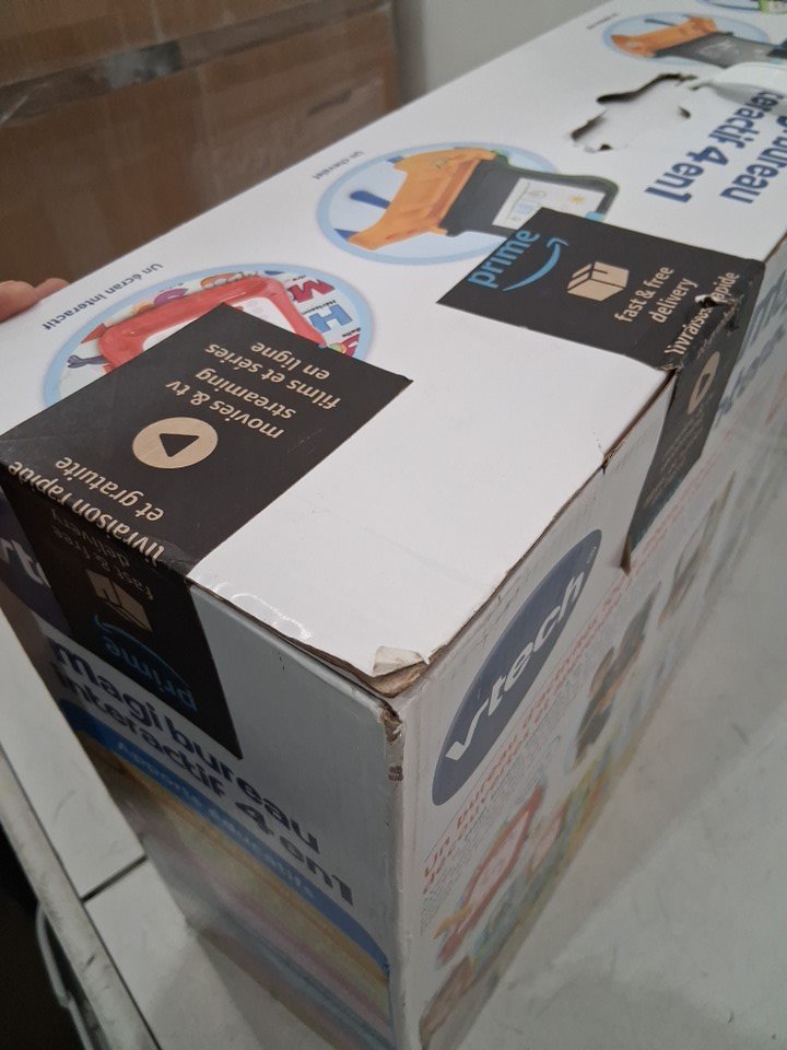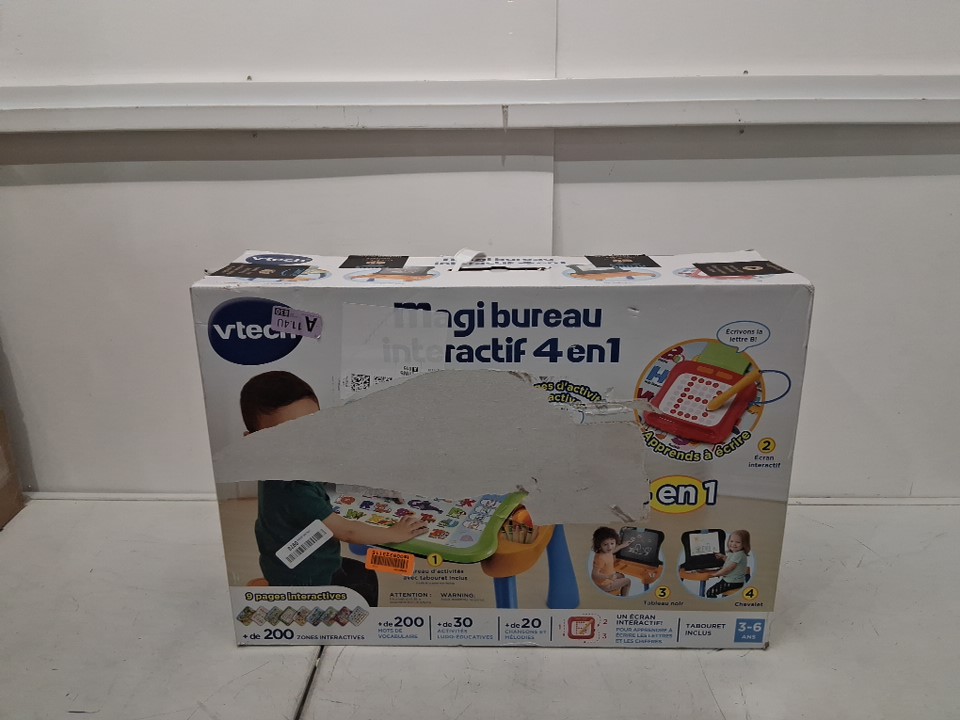 *french edition* vtech interactive 4-in-1 magic back to school learning desk with stool, chalkboard, easel, writing pad & projector, ages 3-6- green/blue- (model: 80-195805)