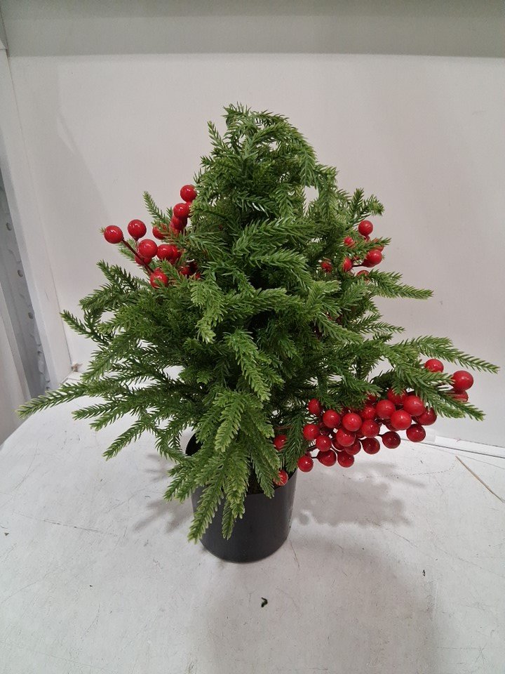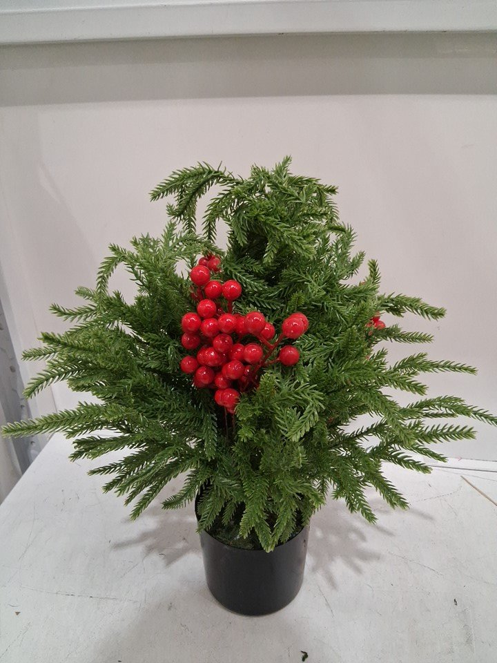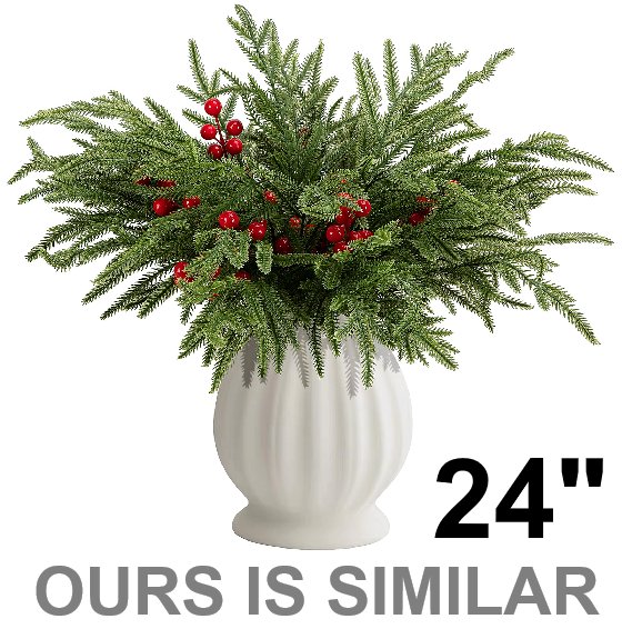 Tabletop artificial pine and red berry Christmas arrangement - 24" - Green