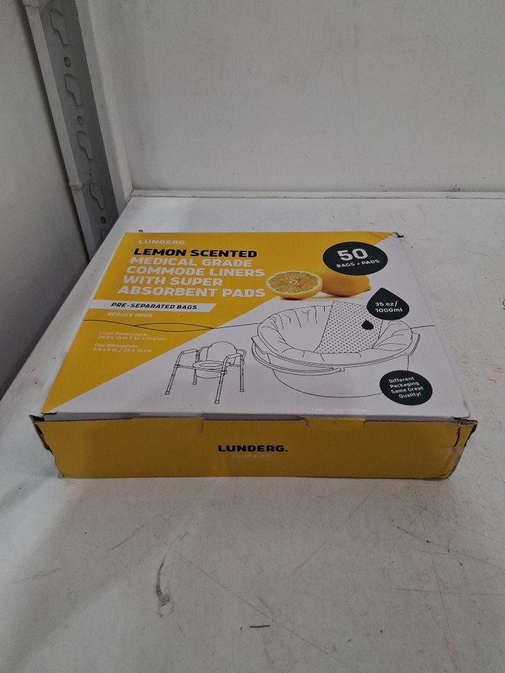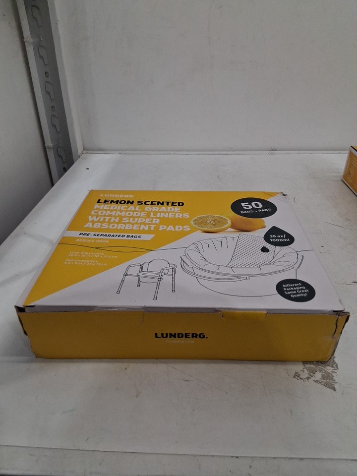 100PC Lunderg Medical Grade Commode Liners with Absorbent Pads - Universal fit - Lemon Scent