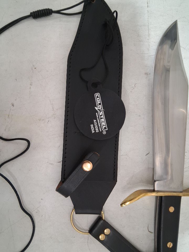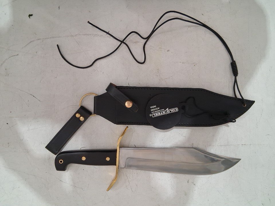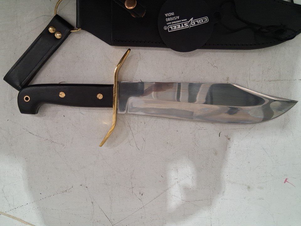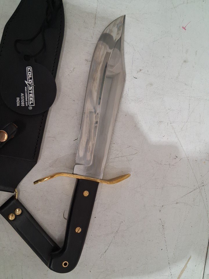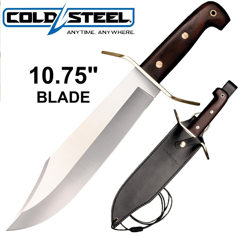 Cold Steel 1090 Carbon Steel Wild West Bowie Replica Knife with Leather Sheath - 10.75" Blade - Silver/Brown (Model: CS-81B)