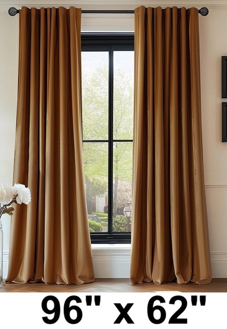 (2 Panel) Velvet feel thermal insulated super soft Rod pocket curtains - 96" x 62" - Gold/brown