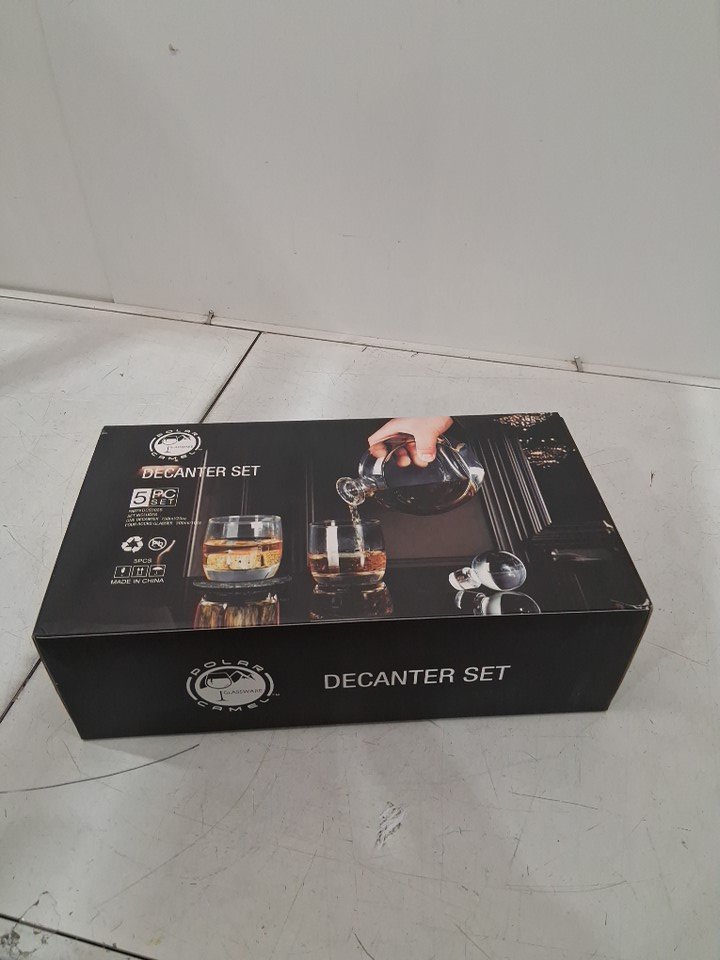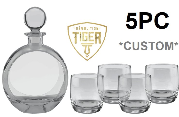 5pc *custom* Polar Camel Round Decanter with 4 -10 oz Round Rocks Glasses - 750ml decanter